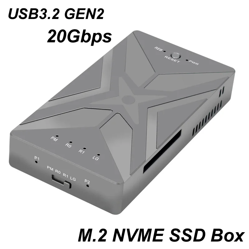 Review - M.2 NVME SSD RAID Dual Bay M2 SSD Case Box Support For SSD Hard Disk Box TYPE-C USB 3.2 GEN2 x 2 20Gbps 2230 2242 2260 2280