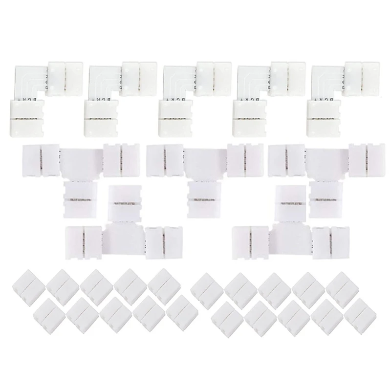 30 Pcs 4 Pin for T/L Shape Solderless LED Connector Right Angle Corner Connector